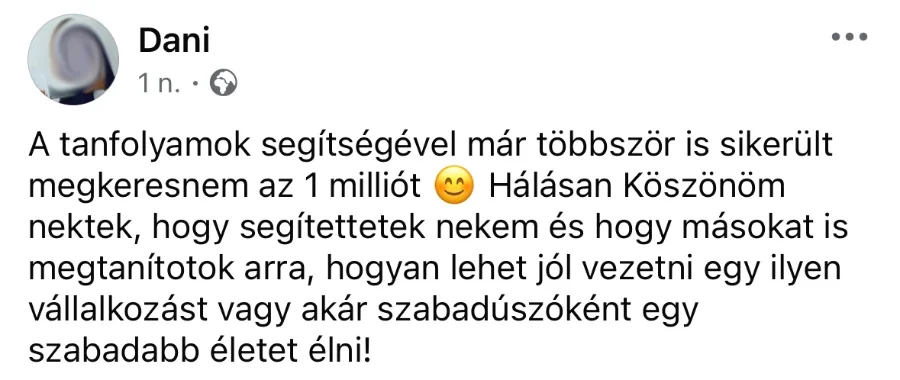 Naponta érdemes minimum 1-2 órát tanulásra szánni, hogy ha mielőbb szeretnél szabadúszóvá válni. Természetesen, ha a meló mellett ennél több idő is rendelkezésedre áll, akkor az csak jó lehet. Volt olyan ügyfelünk, aki már 1 hónap alatt eredményeket ért el, de olyan is, aki 4 hónap után lett szabadúszó, de velük találkozni fogsz majd a mentor csoportunkban.